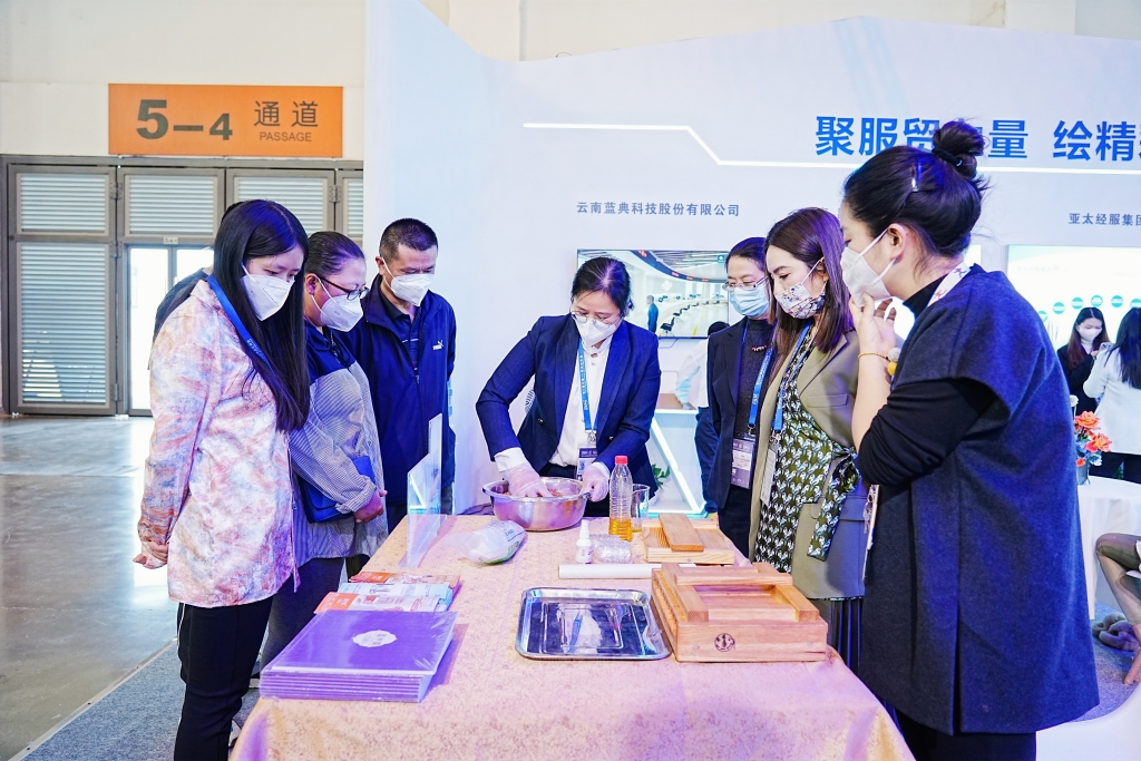 同时,PP电子集团全资子公司昆中药精彩亮相云南服务贸易展区。在展区现场,昆中药非物质文化遗产传承人为到访宾客展示了 “昆中药传统中药制剂”之手搓大蜜丸工艺,吸引了众多宾客前来参观和体验。