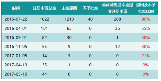 刘军锋博士认为,在2015年7.22临床试验数据核查之后,国内临床研究的体系框架、申请者、CRO、审评机构等相关主体都已经有了很好的转变,对于临床试验的严肃性已经形成了行业共识。被业界称为“7.22惨案”的临床试验数据核查共涉及1622个注册申请,共有1210个注册申请主动撤回,40个注册申请不予批准。多轮核查之后,注册申请的总体质量显著提升,在2年时间内,撤回及不予批准的比例从7.22时的高达90%到逐渐归零。