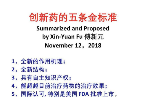 图表4. 傅新元教授提出的创新药金标准“傅氏五条”