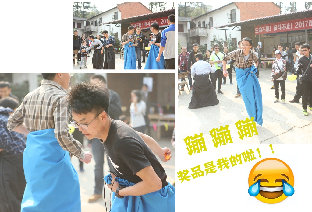 这头是一个个套在袋子里的同事蹦蹦跳跳,走进一看,原来是在参加 “袋鼠跳”的竞赛,还来不及参与,那头的“团队接球”已经开战了,只见接球的队员们端着小盆左右摇晃,一不小心,好不容易接到的乒乓球又弹了出去,引来现场笑声一片。